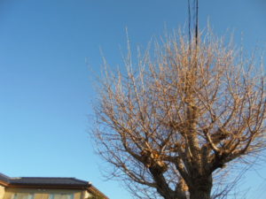 上の写真は自宅前の銀杏の木ですが、ようやく葉が落ち切り。