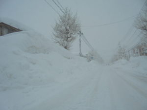 (自宅前。降雪+除雪で2m以上の壁に。というかもう山)