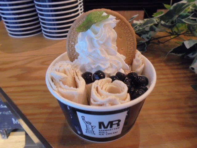 この後は原宿やその近辺でショッピング。合間に「マンハッタンロールアイスクリーム」。有名?全然知らない💦私が食べたのは「タピオカミルクティー」味。おそらくタピオカを食べたのは初めて。ん~?こんなもの?でした。アイスは美味しかったッス。(ここらへんで私のエネルギーがいったん切れました)
