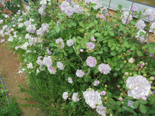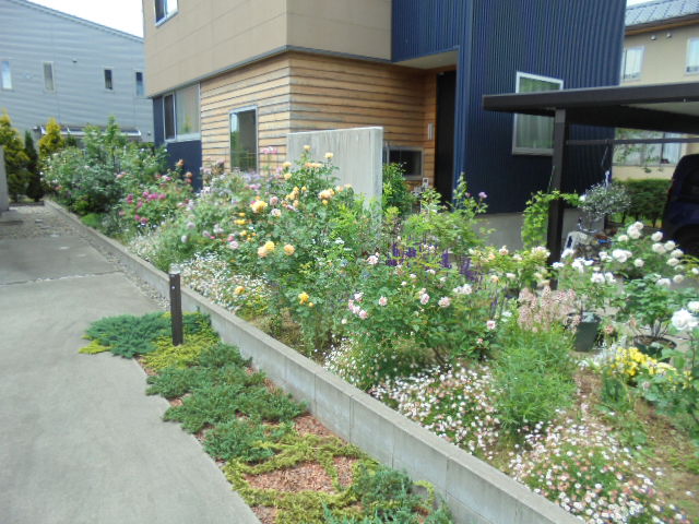 個人的には(整理という意味で)もう少しなんとかならないの?と思いますが、ご本人はこの感じがいいのだそう。先日、見附のイングリッシュガーデンに行ってきましたが、確かにこんな感じに植えてました。(もちろん、うちよりは見栄えはいいですが)